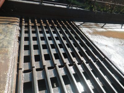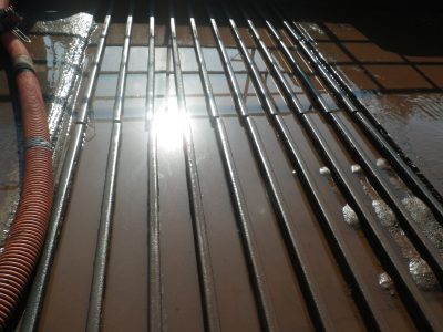 高圧洗浄と高圧吸引車を用いてレールの間に詰まっていた堆積物を除去し、綺麗に仕上げました。詰まりをなくす事で設備メンテナンスにもつながります。特殊な機械で特殊な清掃、達成感もありやりがいのある作業だと思います。
