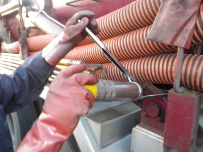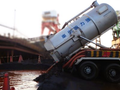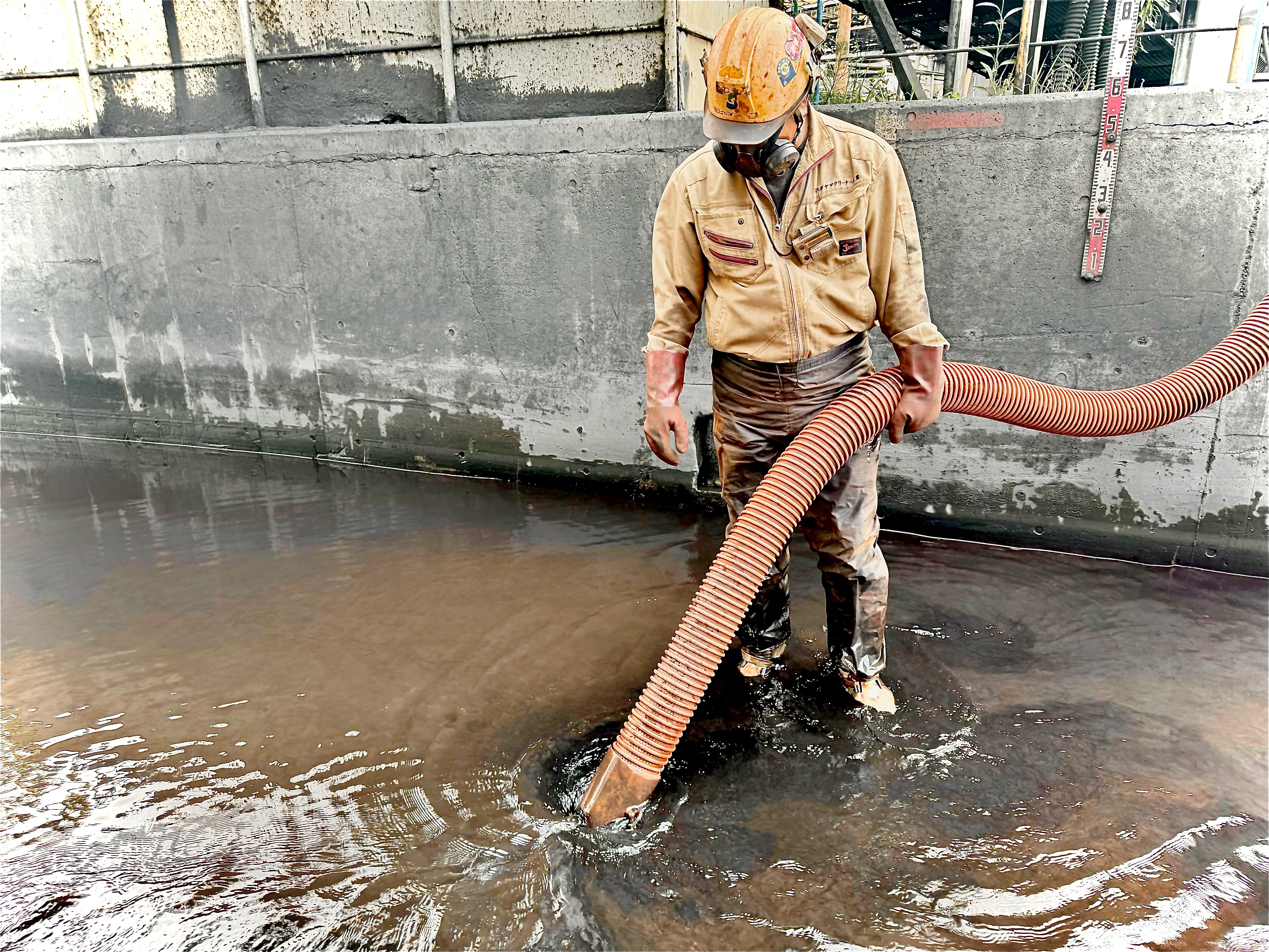 工場内に関わらず、側溝内の堆積物や設備からの落鉱を吸引・処理することで汚泥等の排水を防ぎます。