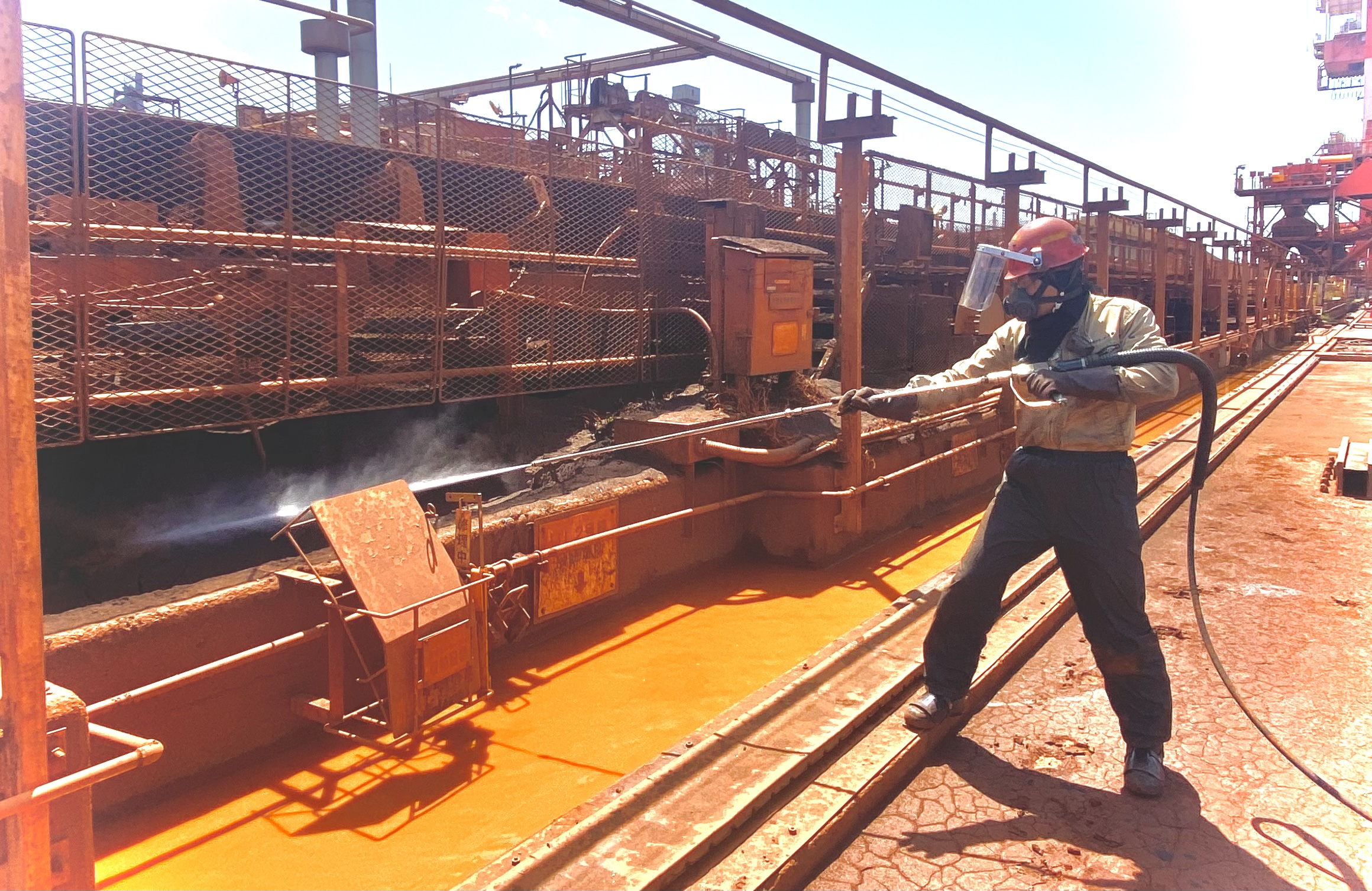 工場内設備に固着したスケールを、工場の設備トラブルにいたる前に高圧洗浄を用いて洗浄メンテナンスを行います。